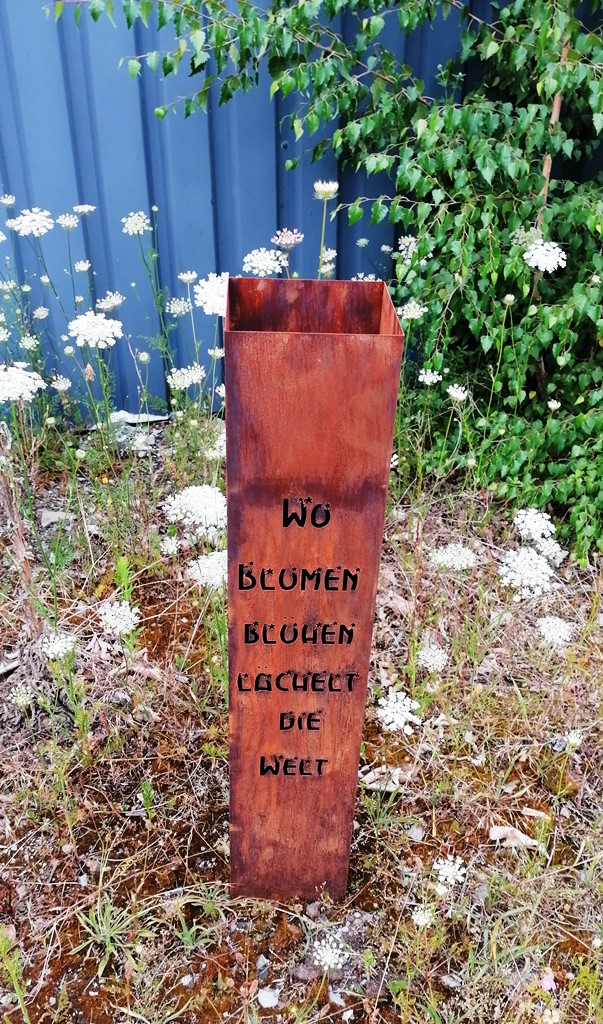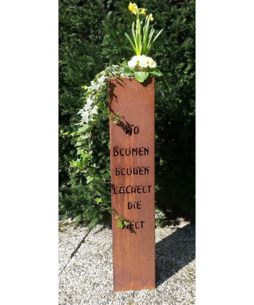 Gartensäule – Wo Blumen blühen, lächelt die Welt - Edelrost