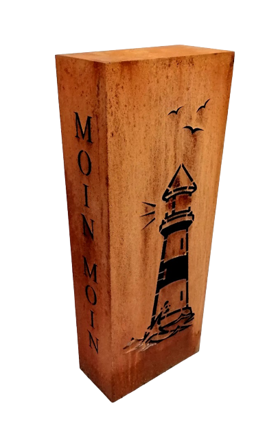 Weiterführende Links zu "Edelrost Säule Quader Moin Moin mit Leuchtturm 100 cm"