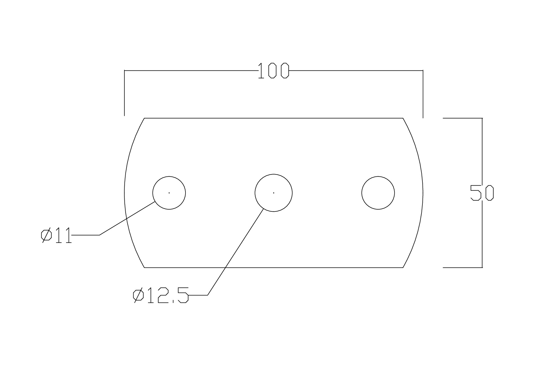 | 100x 50mm | 1x Ø 12,5mm / 2xØ 11mm | 70mm |